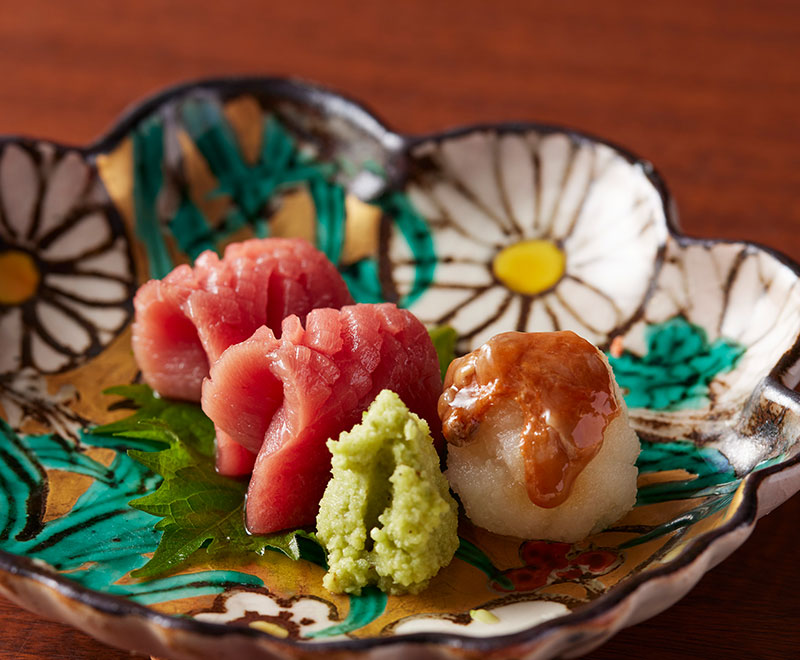 料理を引き立てるお酒は、当店の和食との相性を考え厳選した日本酒を中心に揃えております。全国各地から選りすぐり、常時20種類以上をご用意。お好みで選べる色とりどりのおちょこもございますので、見た目も楽しみながらお料理とともにご堪能ください。